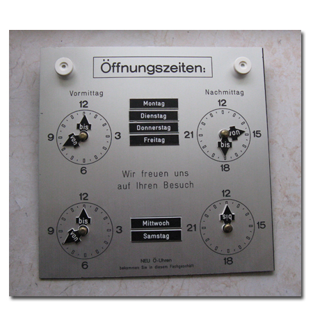 Öffnungszeitenschilder