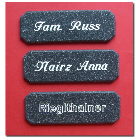 Hinweis: auch im Granit Design ist jede Gestaltung möglich. Ebenso fertigen wir Firmenschilder, Trauerschilder, Hinweisschilder udgl. aus diesem Werkstoff, ganz nach Ihren Wünschen